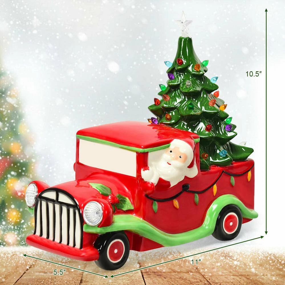 - Compact ceramic decoration: crafted of premium durable ceramic material, this pre-lit tabletop Christmas truck will be popular for generations, compact size with lightweight is great for adding holiday cheer to tabletops, mantels, kitchens, fireplaces, etc.