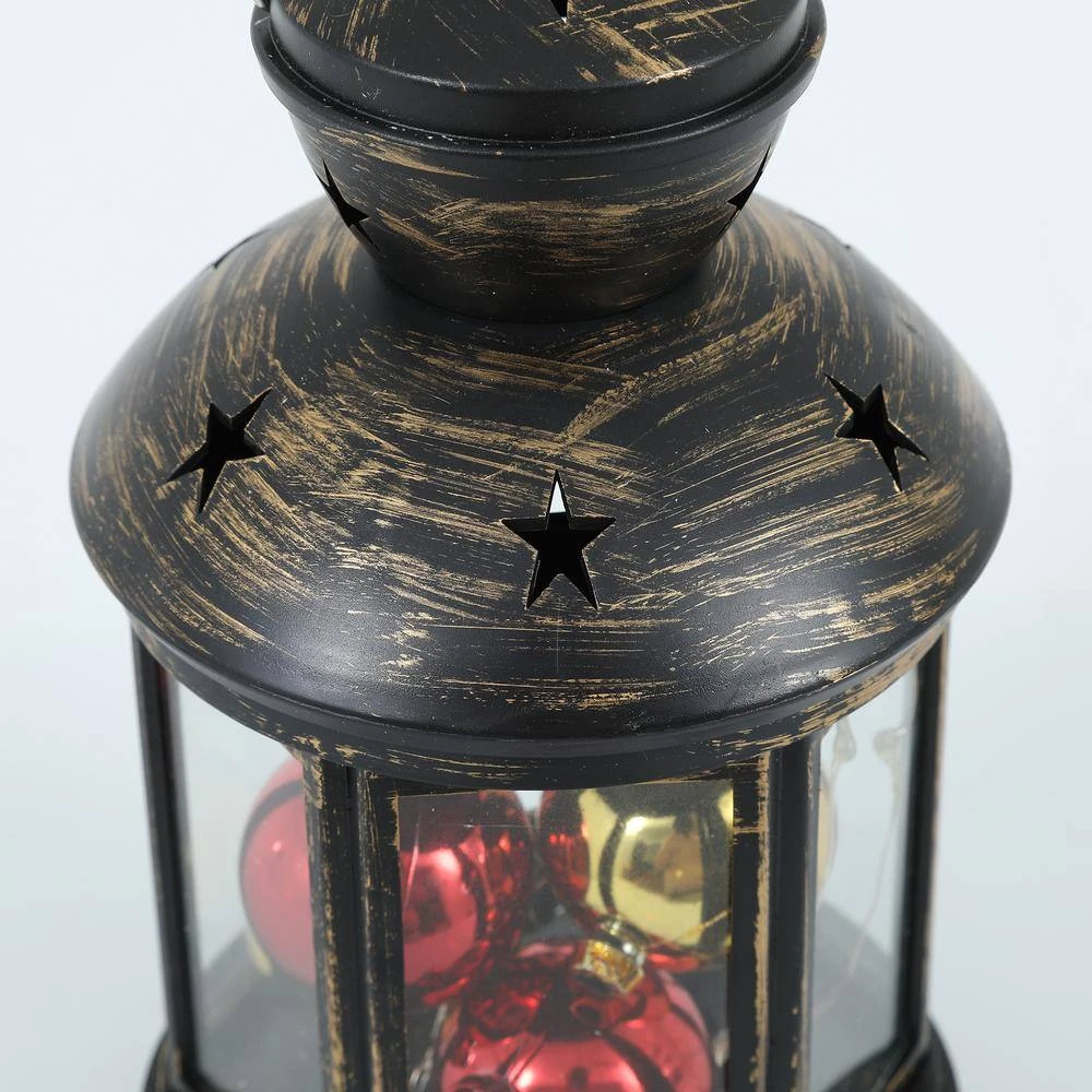 - Lantern filled with (6-piece) 1.6 in. Dia Christmas ornaments