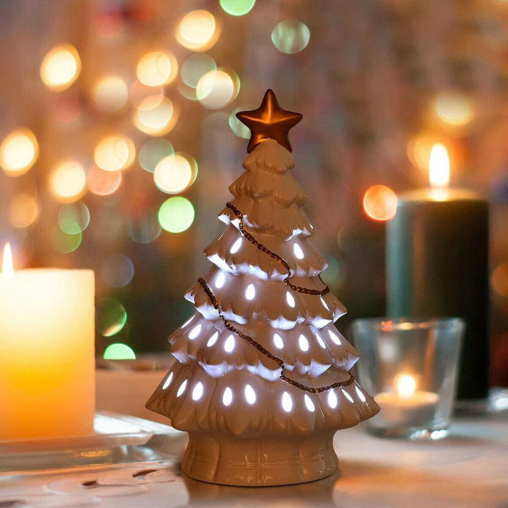 - 11.5 in. ceramic tabletop Christmas tree which combines stunning color matching and exquisite hand-painted craftsmanship to bring festival atmosphere and fun