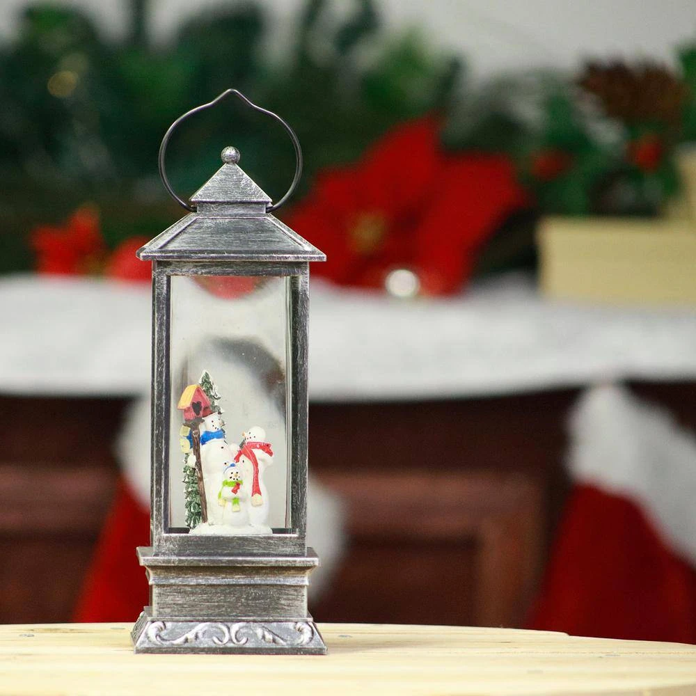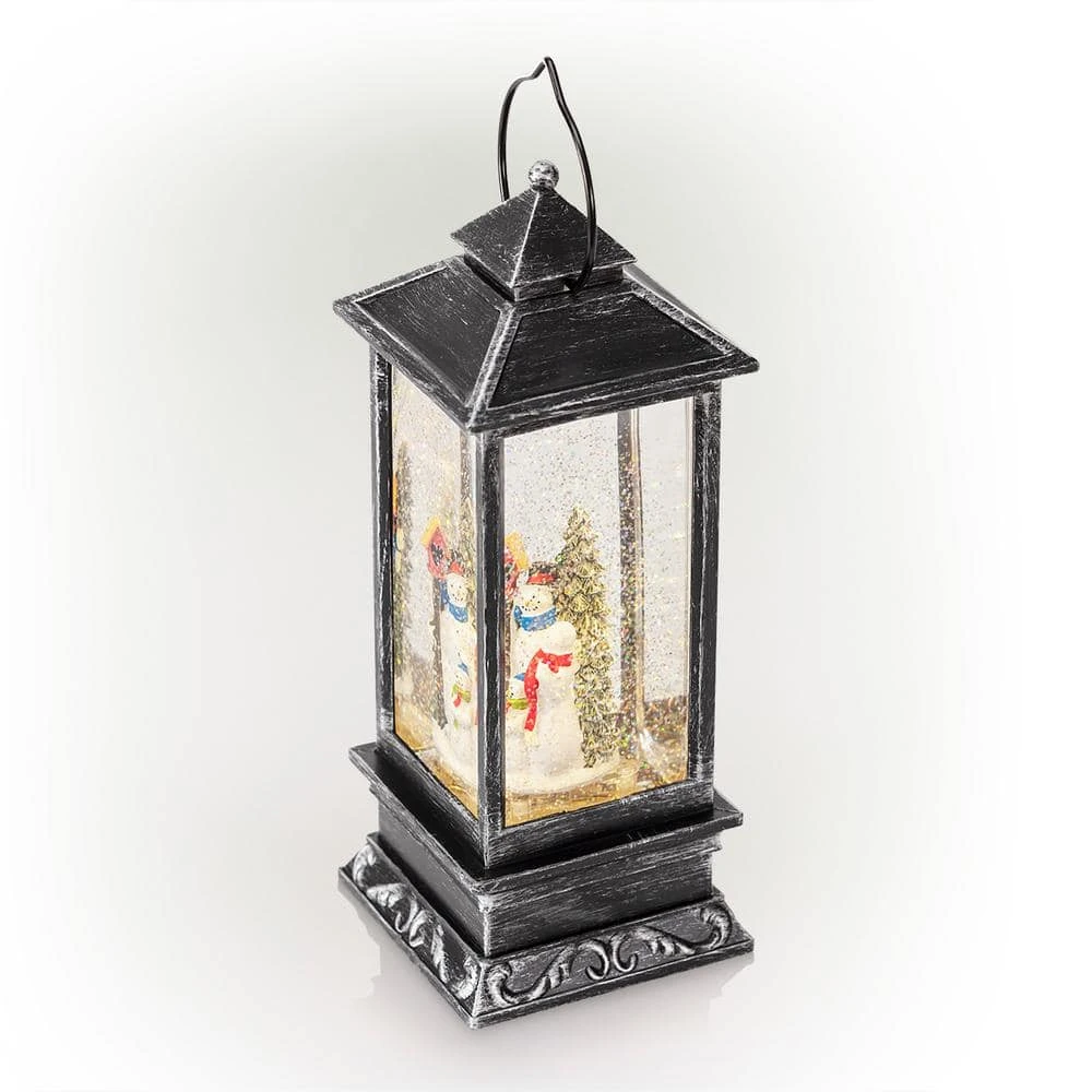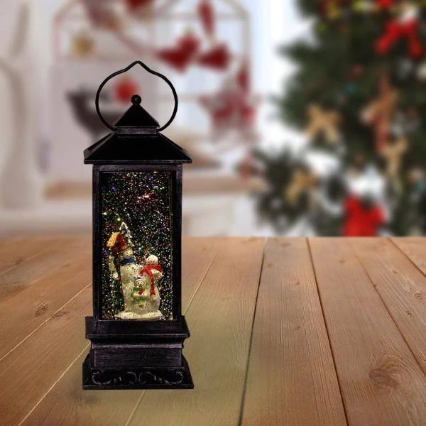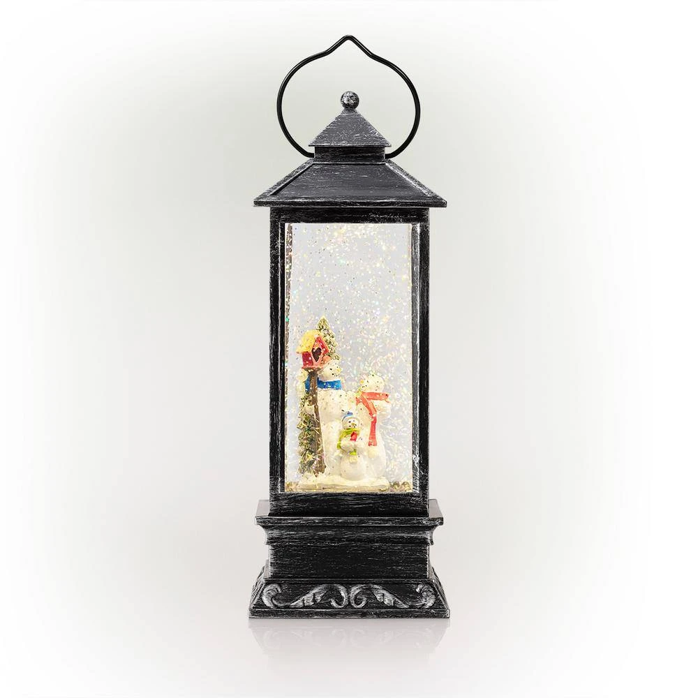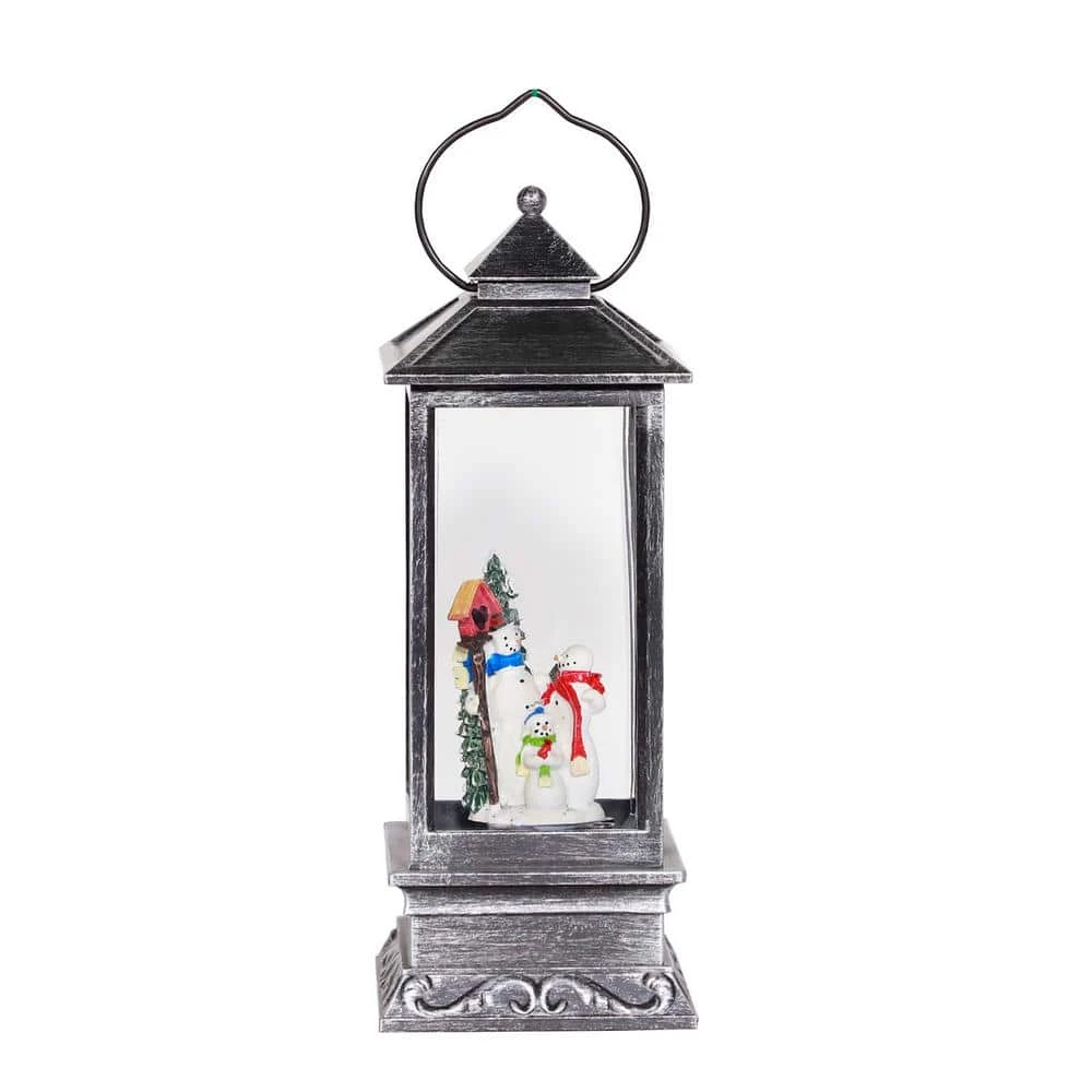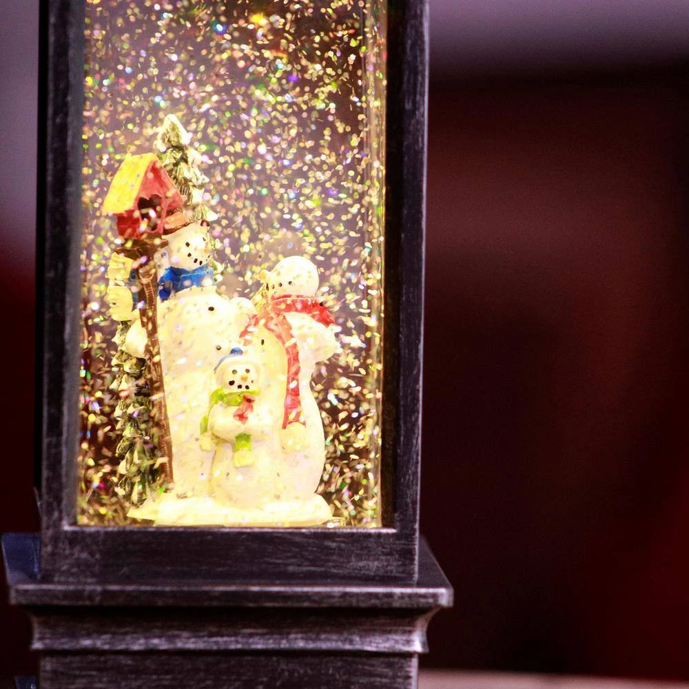 - 11 in. H lantern snowman snow globe: vintage lantern design decoration features a snow globe with a snowman family to add festive cheer to your holiday decor