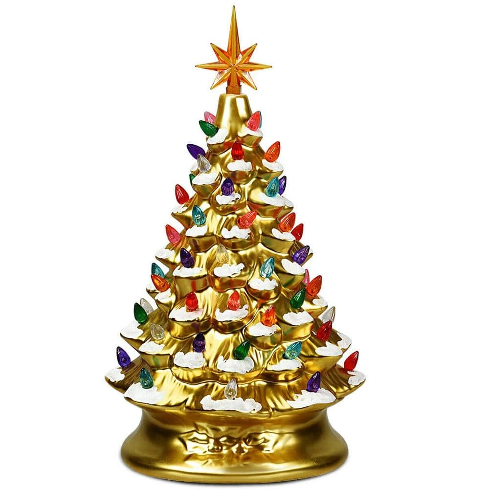 - 15 in. ceramic tabletop Christmas tree which combines stunning color matching and exquisite hand-painted craftsmanship to bring festival atmosphere and fun