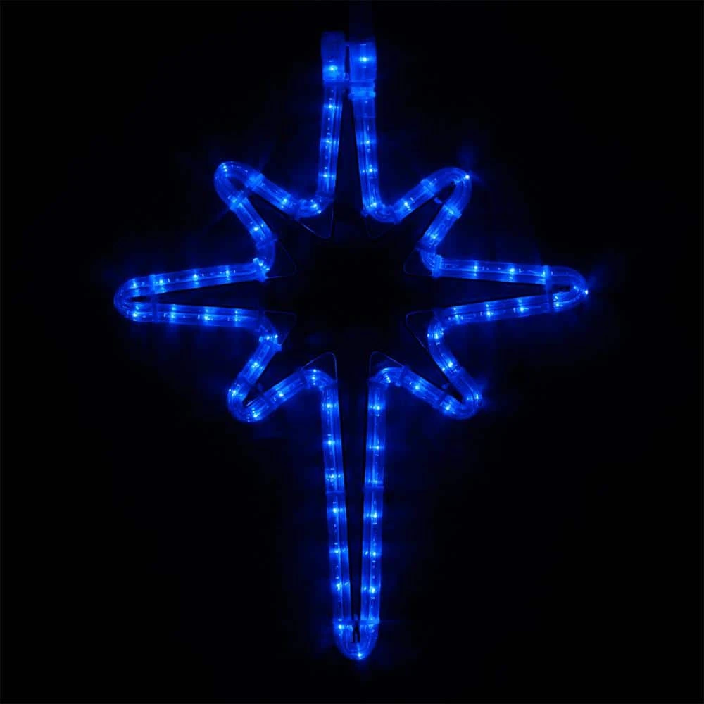 Welcome the Christmas season with this vivid LED Bethlehem Star from Wintergreen Lighting. The long-lasting, energy efficient LED mini lights are encased in UV resistant PVC tubing and strapped to a sturdy metal frame, so this star will shine brightly through even the darkest nights. And its long 5 ft. lead cord is ideal for hanging display. Perfect for hanging from trees, fences or other exterior surfaces. Mix colors for a Bethlehem Star display that is sure to please the neighborhood.