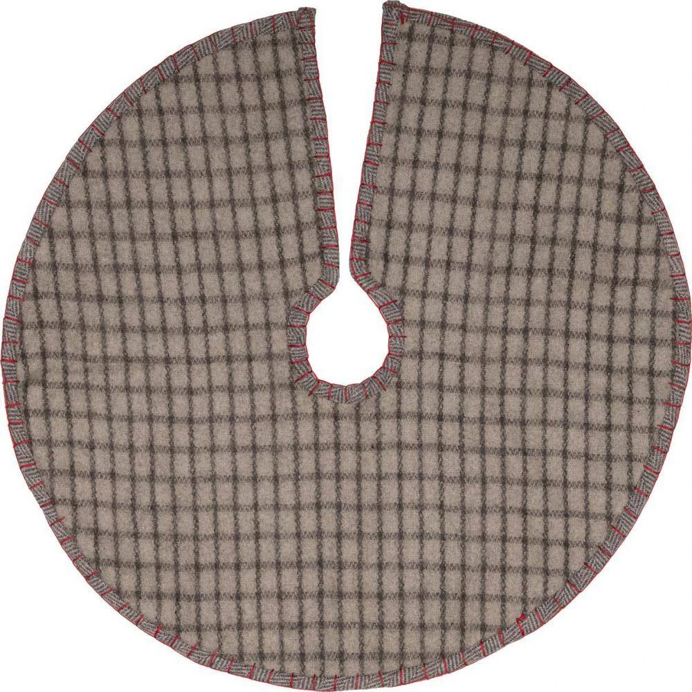 Dress up your tree this year with the Anderson Patchwork Mini Tree Skirt. Notice the alternating patches of cherry red, iron grey, and marshmallow plaid on the herringbone weave felt. The skirt is accentuated with tasteful red whip stitching as a finishing touch. Reverses grey/beige and marshmallow windowpane check felt.