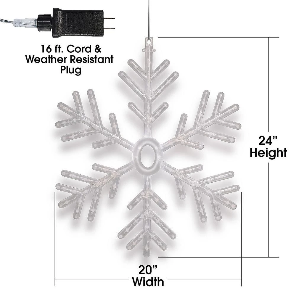 - Ideal holiday decor: Measuring 20 in. L x 1 in. W x 24 in. H, this hanging snowflake adds festive charm and bright illumination to any home. Alpine Corporation’s award-winning design ensures style, reliability, and lasting enjoyment for your holiday celebrations.