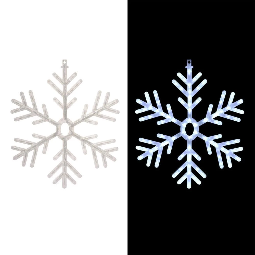 - Festive LED lights: This 24 in. hanging snowflake features 102 cool white LED lights, perfect for brightening entryways, porches, patios, or living rooms, creating a warm and inviting holiday atmosphere indoors or outdoors for the winter season.