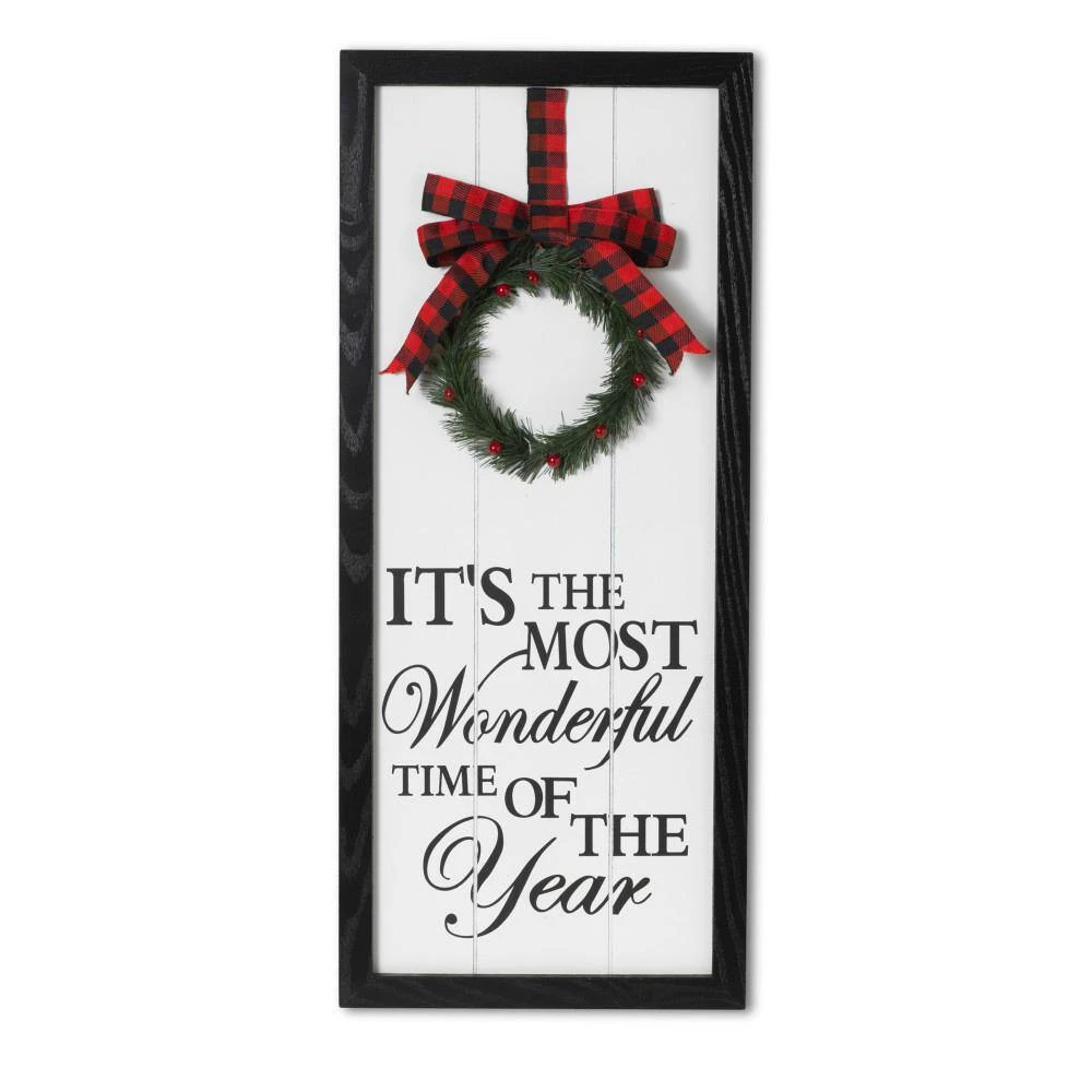 27.56 in. H wood framed Christmas wall sign add a touch of the past to your Christmas decor. Holiday greetings painted in black with a white background, this sign adds a perfect holiday touch. Features a message