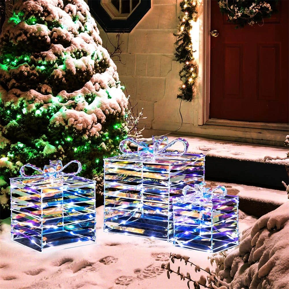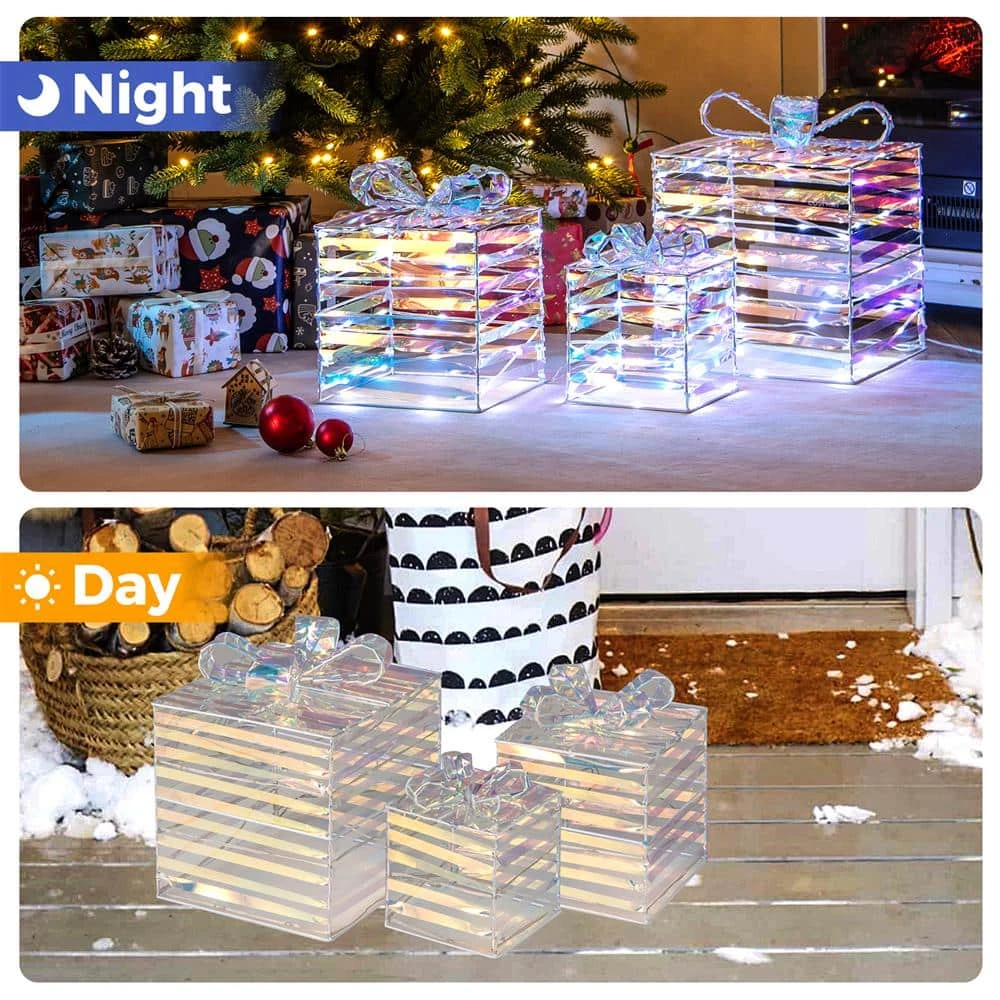 - Dazzling display of lights: these christmas lighted gift boxes are pre-lit with 90 white LED lights, which create a inviting glow, additionally, these energy-saving LED lights remain cool to the touch, making them safe around children and pets