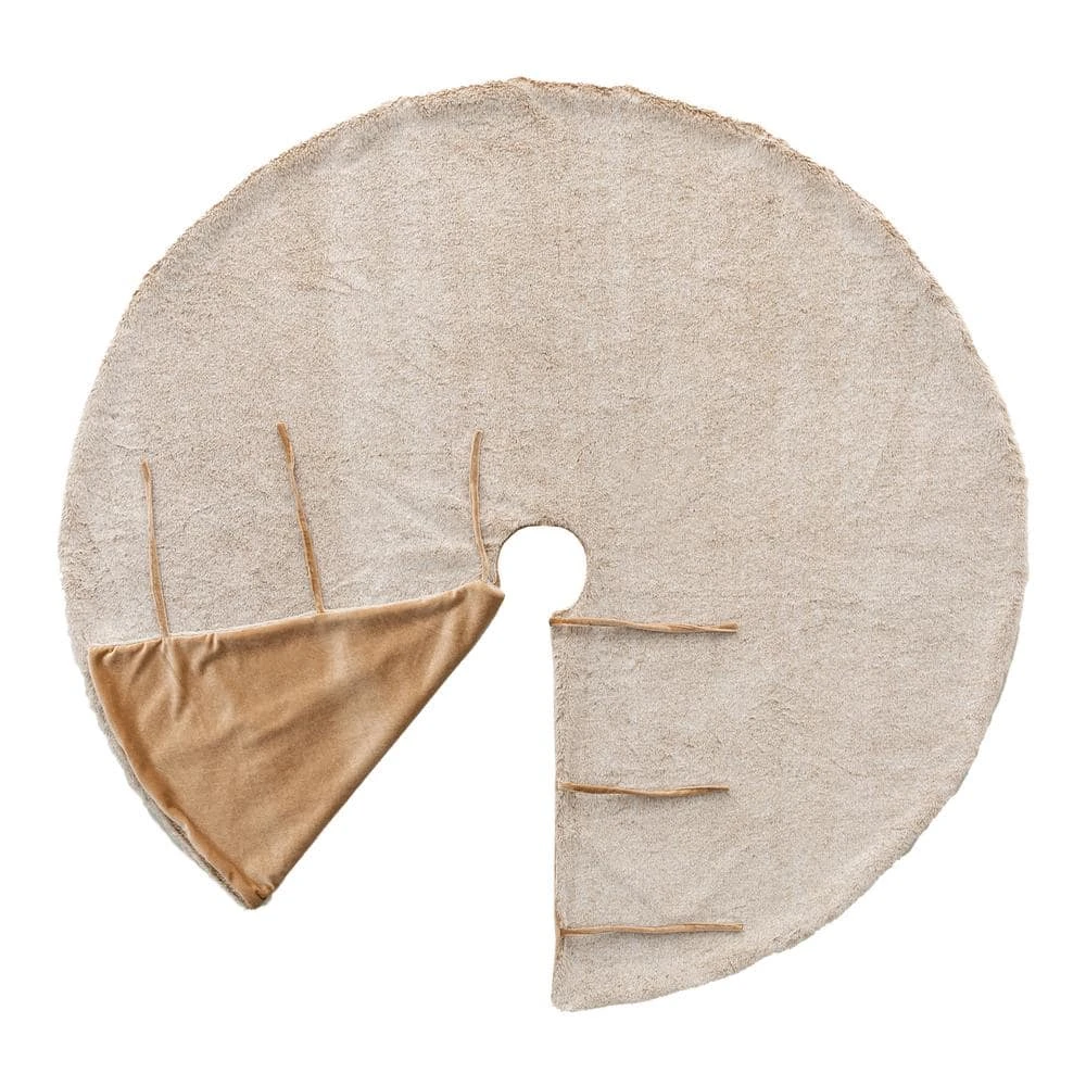 This Christmas tree skirt is designed to be placed around the bottom of your Christmas tree as a stylish protector against tree debris and as a mat for presents. The gorgeous and elegant faux fur makes it more soft and warmth. There are 3 tapes to lace-up for easy use. It adds to the festive atmosphere. And will add atmosphere to the Christmas tree decoration.