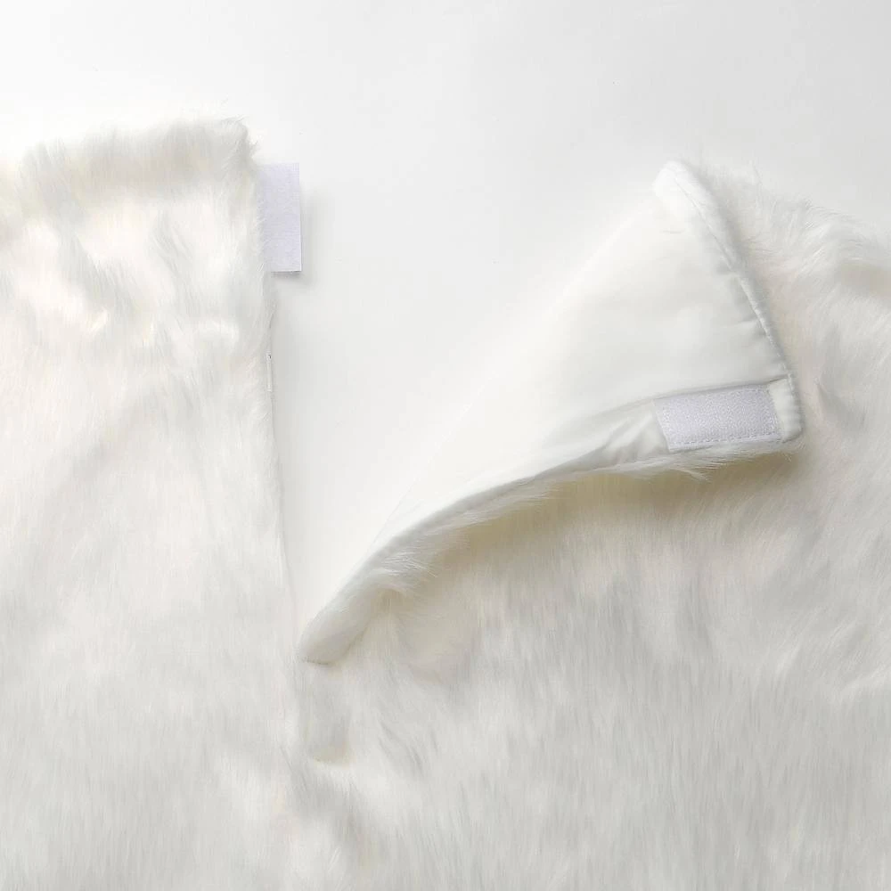 Add the finishing touch by surrounding the base of your Christmas centerpiece with this bright white tree skirt. Made of 100% polyester, this skirt features a soft and appealing feel provided by its faux fur fabric design. The split seam opening allows for easy placement with Velcro tabs included to close and secure the seam.