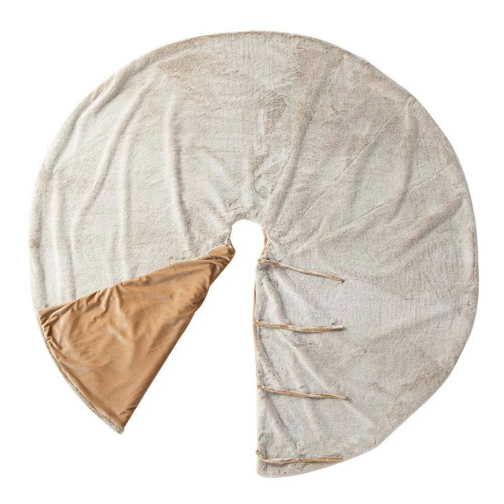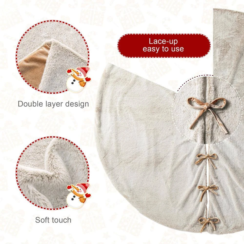This Christmas tree skirt is designed to be placed around the bottom of your Christmas tree as a stylish protector against tree debris and as a mat for presents. The gorgeous and elegant faux fur makes it more soft and warmth. There are 3 tapes to lace-up for easy use. It adds to the festive atmosphere. And will add atmosphere to the Christmas tree decoration.