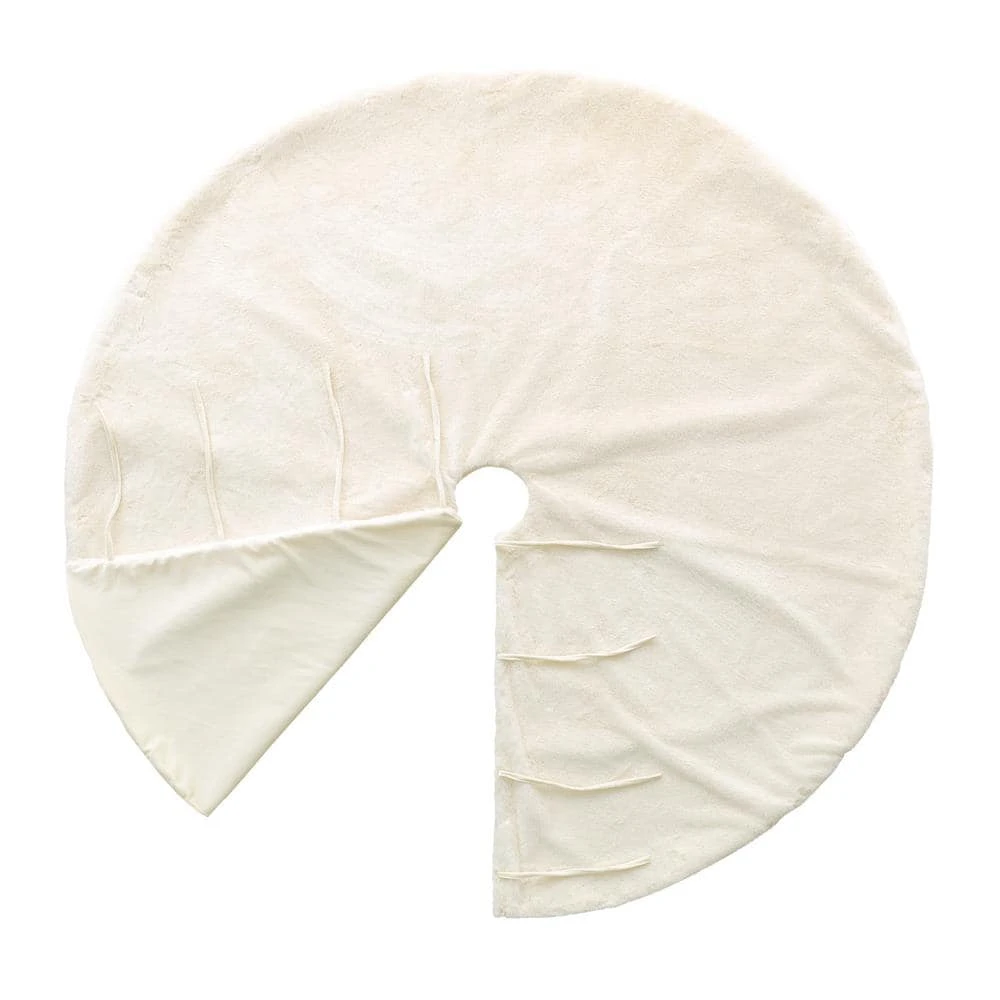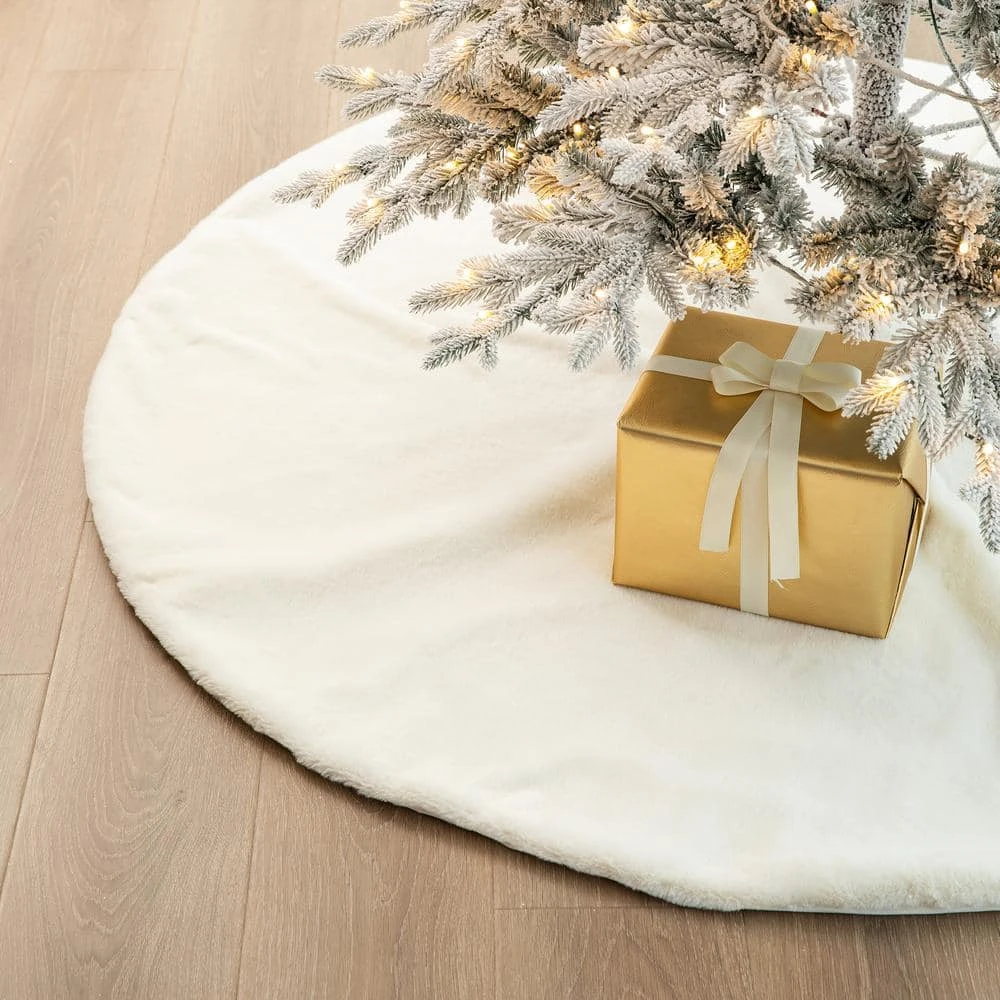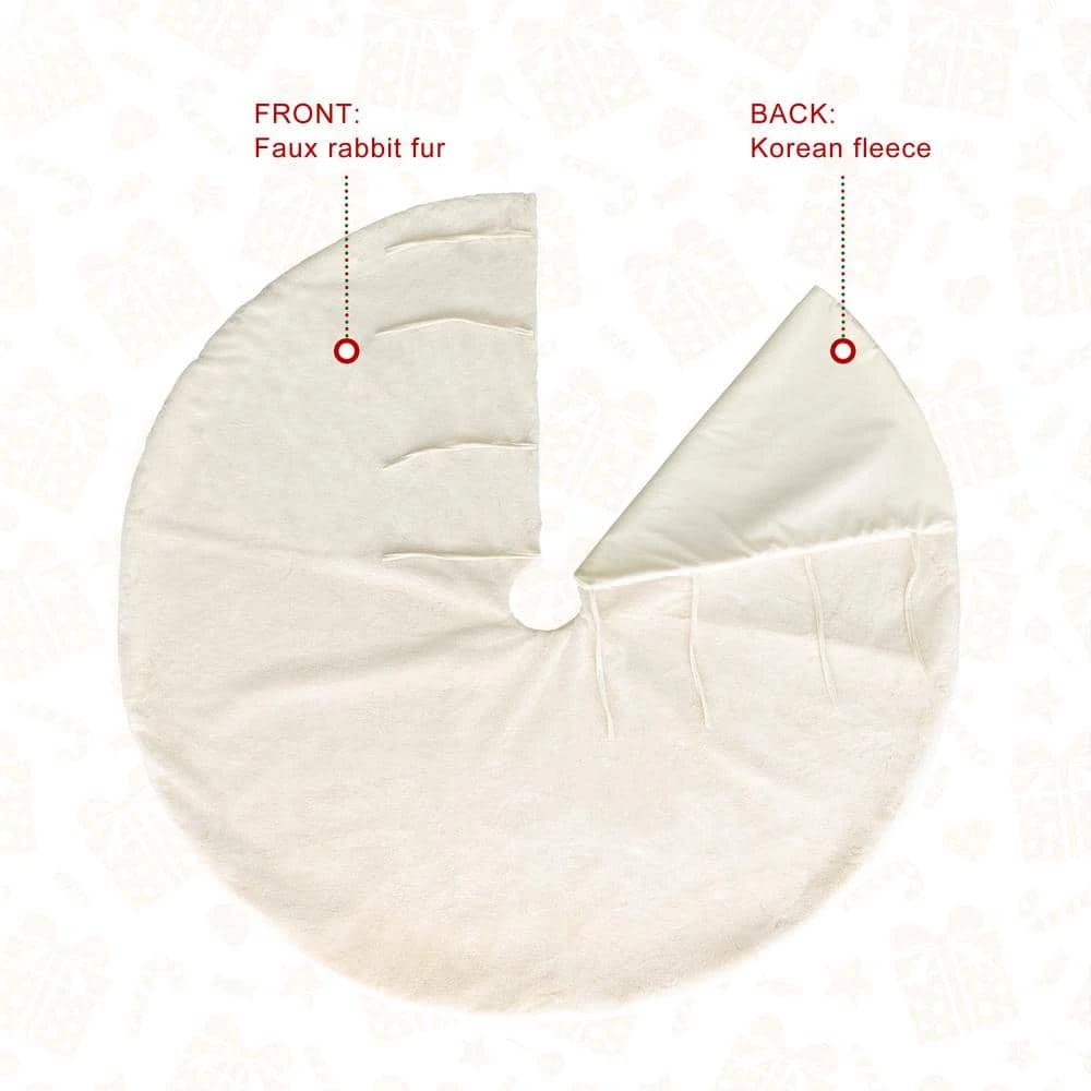 This Christmas tree skirt is designed to be placed around the bottom of your Christmas tree as a stylish protector against tree debris and as a mat for presents. The gorgeous and elegant faux fur makes it more soft and warmth. There are 3 tapes to lace-up for easy use. It adds to the festive atmosphere. And will add atmosphere to the Christmas tree decoration.