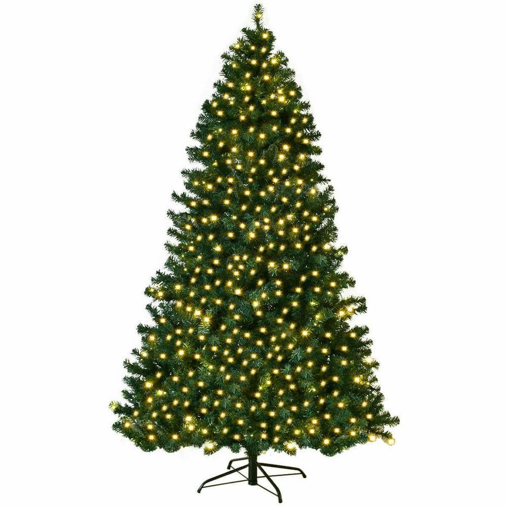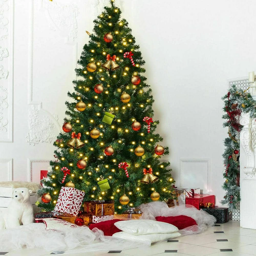 Our brand new 7.5 ft. Artificial Christmas tree is an ideal Christmas trimmings. It features simple green color, 1346 branch tips design to help emulate a real Christmas tree. The tree is made of fade and crush resistant PVC needles, appears fresh-cut. In addition the staggered branches give the tree a fuller profile. High density iron bases to keep the tree planted in an upright position. The pre-installed 400 LED lights provide a warm white lighting effects, add a fantastic festive atmosphere to your home. Our trees are in great quality, making it your best choice. Don’t hesitate to buy it.