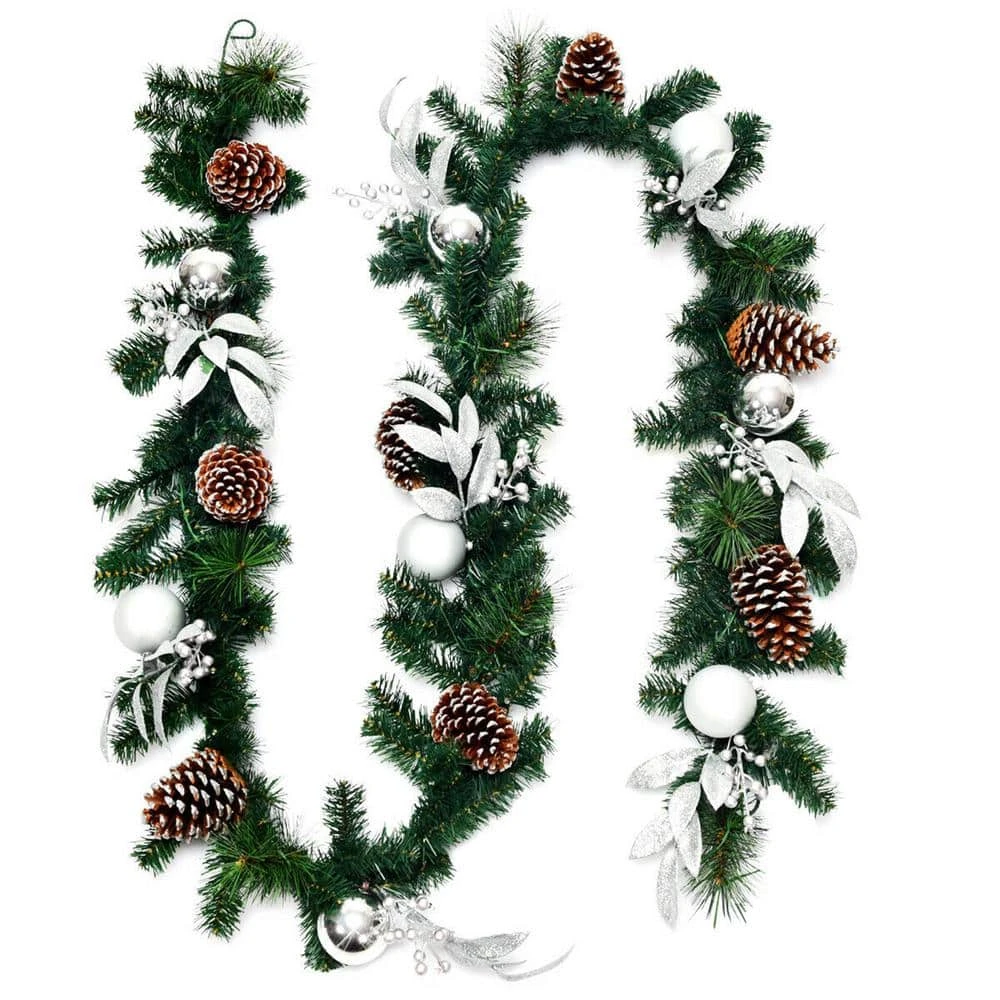 Warm hearted wishes for an old fashioned Christmas and a happy new year filled with all your favorite things. This is our 9 ft. pre-lit garland for Christmas decoration, which can add great fun to your holiday. This beautiful decorative rattan is made of 100% new PVC and has fascinating winter details, such as pine cones, sliver balls and so on. It comes with 50 warm white LED lights and a battery powered timer. After the power supply is switched on, the soft light will brighten the Christmas night. This rattan can be perfectly placed on the table, fireplace and anywhere you want to create a Christmas atmosphere. It can build an incredible festival party and bring a happy winter bless.