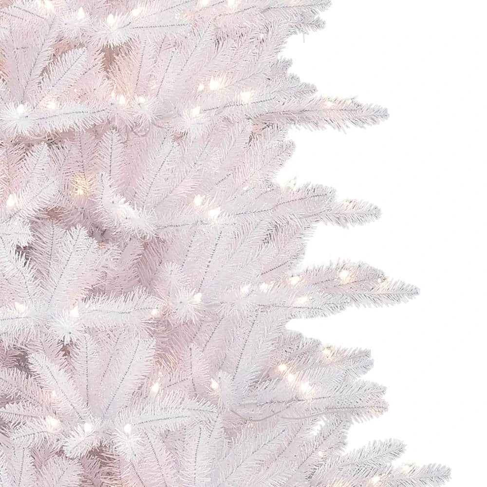 Deck the halls with the Puleo International 9 ft. White Slim Fraser Fir Artificial Christmas Tree. Inspired by lush wintry forests, this artificial tree has 2093 branch tips and 800 Incandescent Clear Lights. The incorporated lights means no more climbing ladders to string lights, saving decorating time. When a single bulb burns out, the other lights on the strand will stay lit for your convenience. We recommend changing the burnt bulb to prevent future outages. Hypoallergenic and needle-shed resistant, the tree is an great alternative to a yearly real tree purchase. With easy to assemble pieces and an included base, your house will be ready for the holidays faster than you can say Rockin’ Around the Christmas Tree. Measures. 9 ft. H x 49 in. Dia.