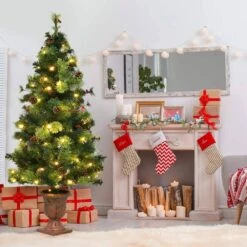 4.5 Ft. Pre-Lit Artificial Christmas Tree In Decorative Planter With 60-Clear LED Lights