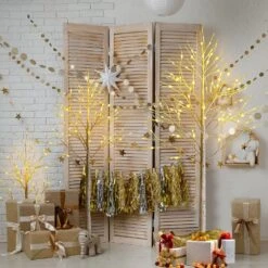 5 Ft. Pre-Lit White Birch Tree Artificial Christmas Tree Twig Birch Tree Christmas Decor