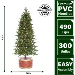 6.5 Ft. Prelit Windsor Pine Slim Artificial Christmas Tree With Warm White LED Lights