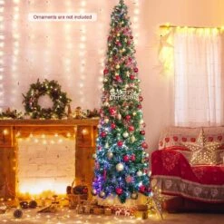 8 Ft. Green Pre-Lit Christmas Pencil Tree With Colorful Fiber Optics