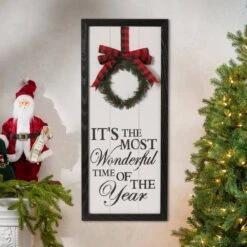 27.56 In. Multi-Color Wood Wall Sign With Pine Wreath And Bow Accent