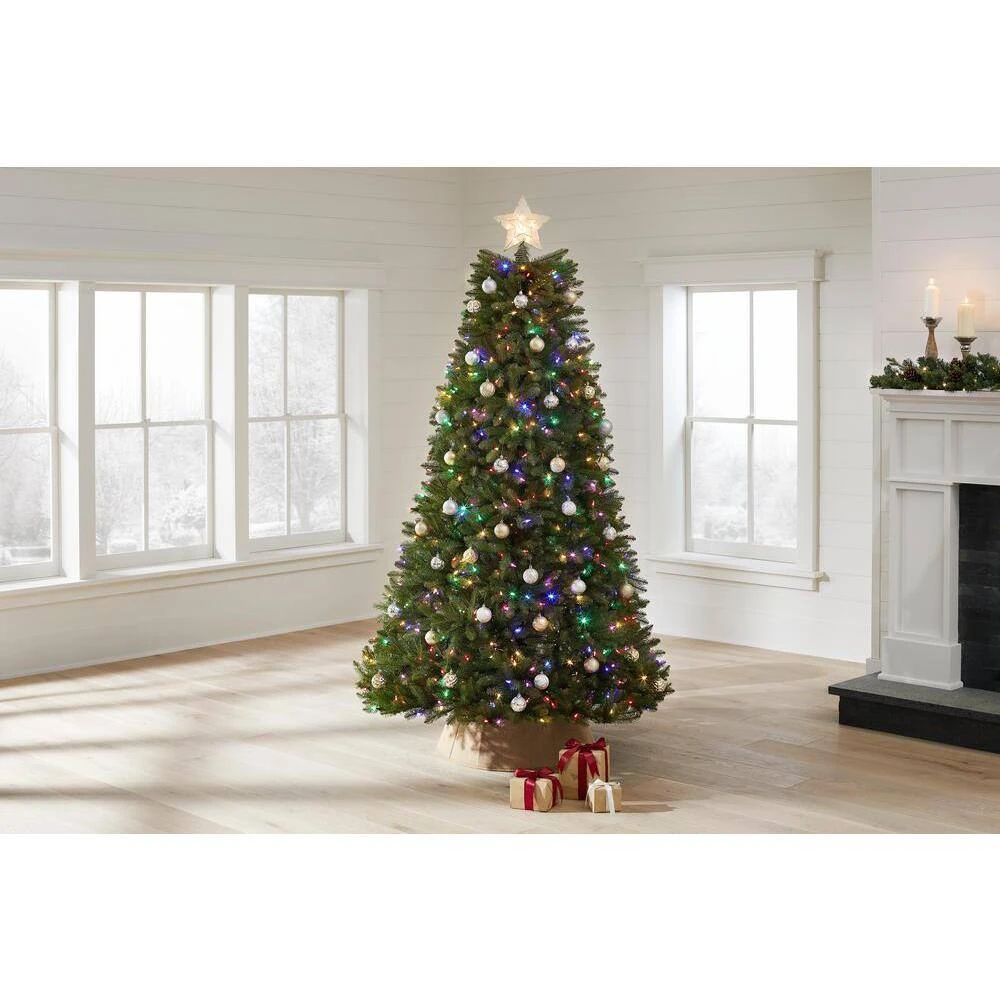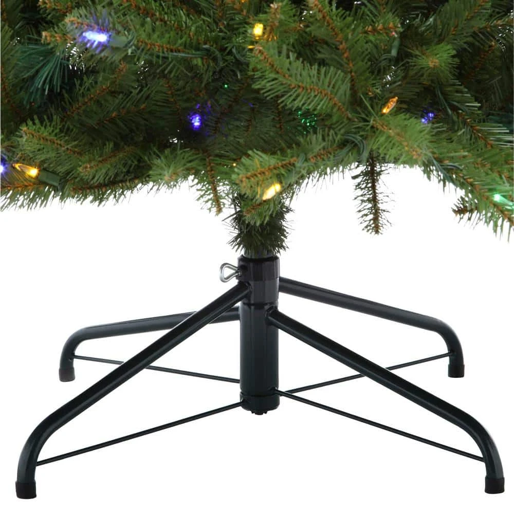Add some sparkle to your home this holiday season with the 7.5 ft. North Valley Spruce Artificial Christmas Tree. The 750 LED lights change from white to multicolor simply by touching a summary. It features over 2514 Dunhill fir branch tips for a realistic display. Easy to set up and store, it includes extra bulbs and a metal tree stand.