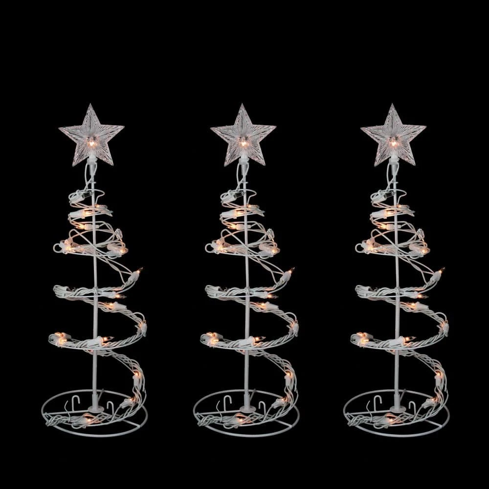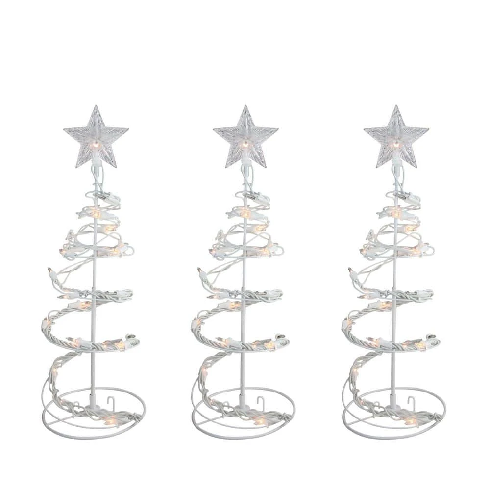 - Set of 3 white spiral cone walkway Christmas trees decor