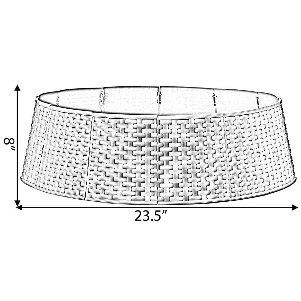 Tree skirt will cover your tree stand and add a finishing touch to your holiday tree. Assembles in minutes by clicking all pieces together, Durable plastic material features a basket weave pattern that’s washable and waterproof as well. Breaks down in 12 small pieces for easy storage.