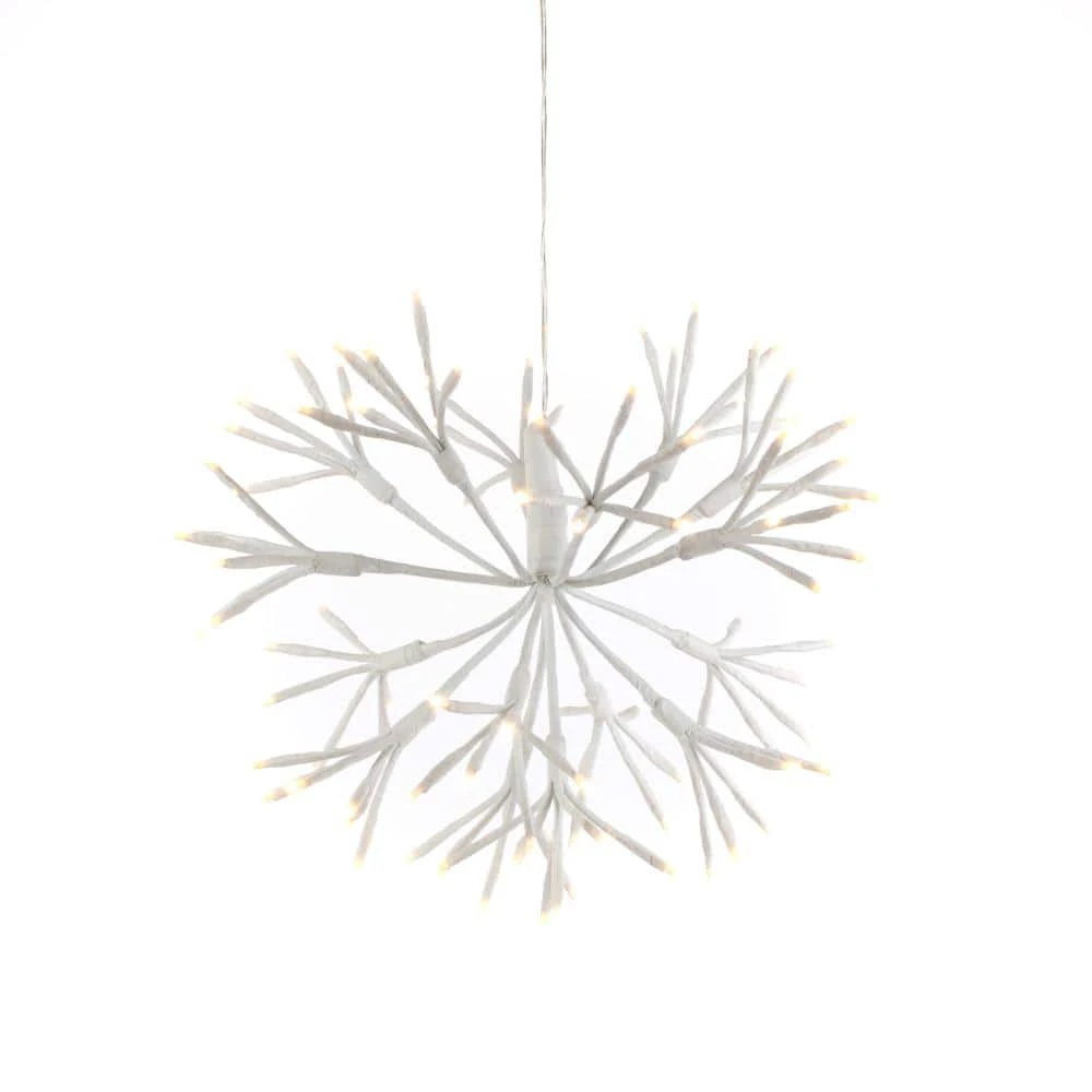 Add illumination to your Holiday decor with this 11.8 in. D LED lit Starburst Hanging Lights. This radiant light decoration features 96 Warm White LED Lights. Hang this item from a tree in your yard, as an ornament on your indoor Christmas Tree or from any location in your home to add an elegant touch of light to your Holiday Decorations this year. Powered by a 9 ft. L electric cord with an Outdoor adapter, this Starburst Hanging Light can be used both indoors and outdoors.
