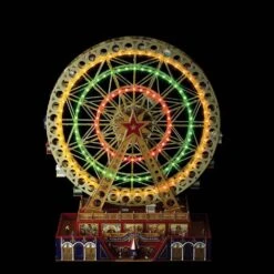 15 In. Christmas Tabletop Clock Tower Collectible Buildings With Revolving Train, Village House